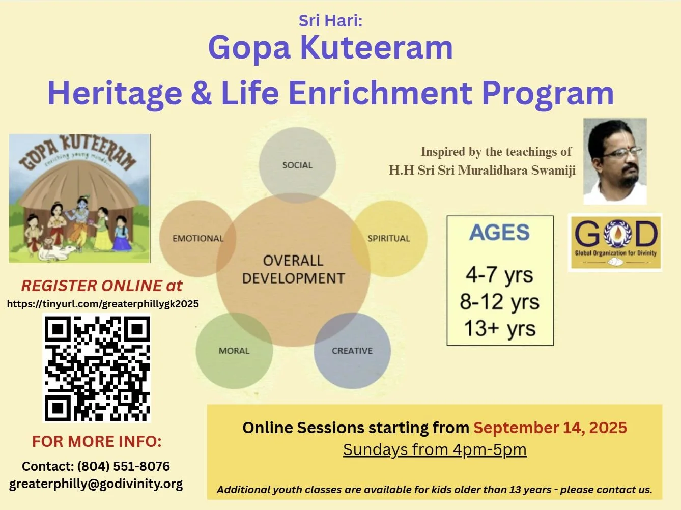 Launched in 2024, Philadelphia’s Gopa Kuteeram center brings a fresh and hands-on approach to spiritual learning. With hybrid classes catering to children aged 5 to 12, this region integrates crafts, festival-based activities, and storytelling to enhance understanding. The program proudly celebrated its first annual day this year — a milestone that showcased the early enthusiasm and solid foundation of this budding center.